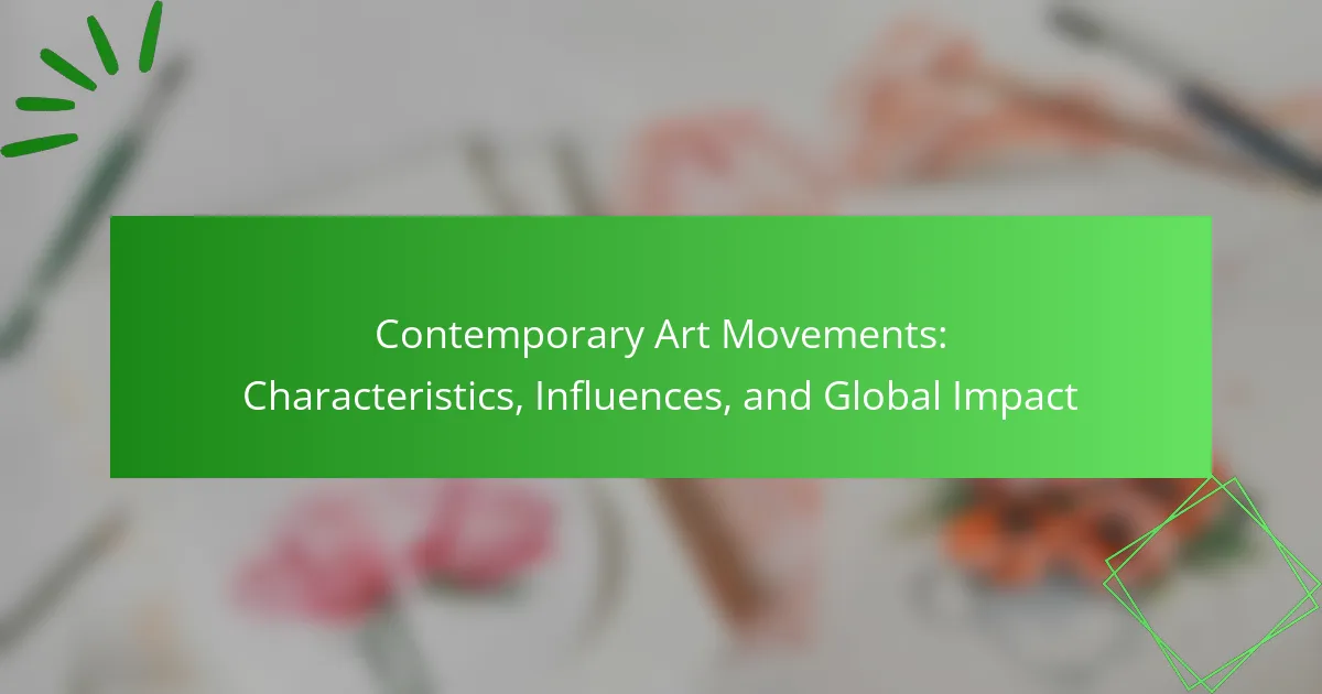 Contemporary art movements are defined by their diversity, innovation, and engagement with social issues. They often challenge traditional boundaries, incorporating technology and new media. Key characteristics include a focus on individual expression, collaboration, and a global perspective. Movements like conceptual art and street art exemplify these traits, reflecting cultural dialogues and contemporary experiences. The impact of these movements is seen in their ability to provoke thought and inspire change across different societies.